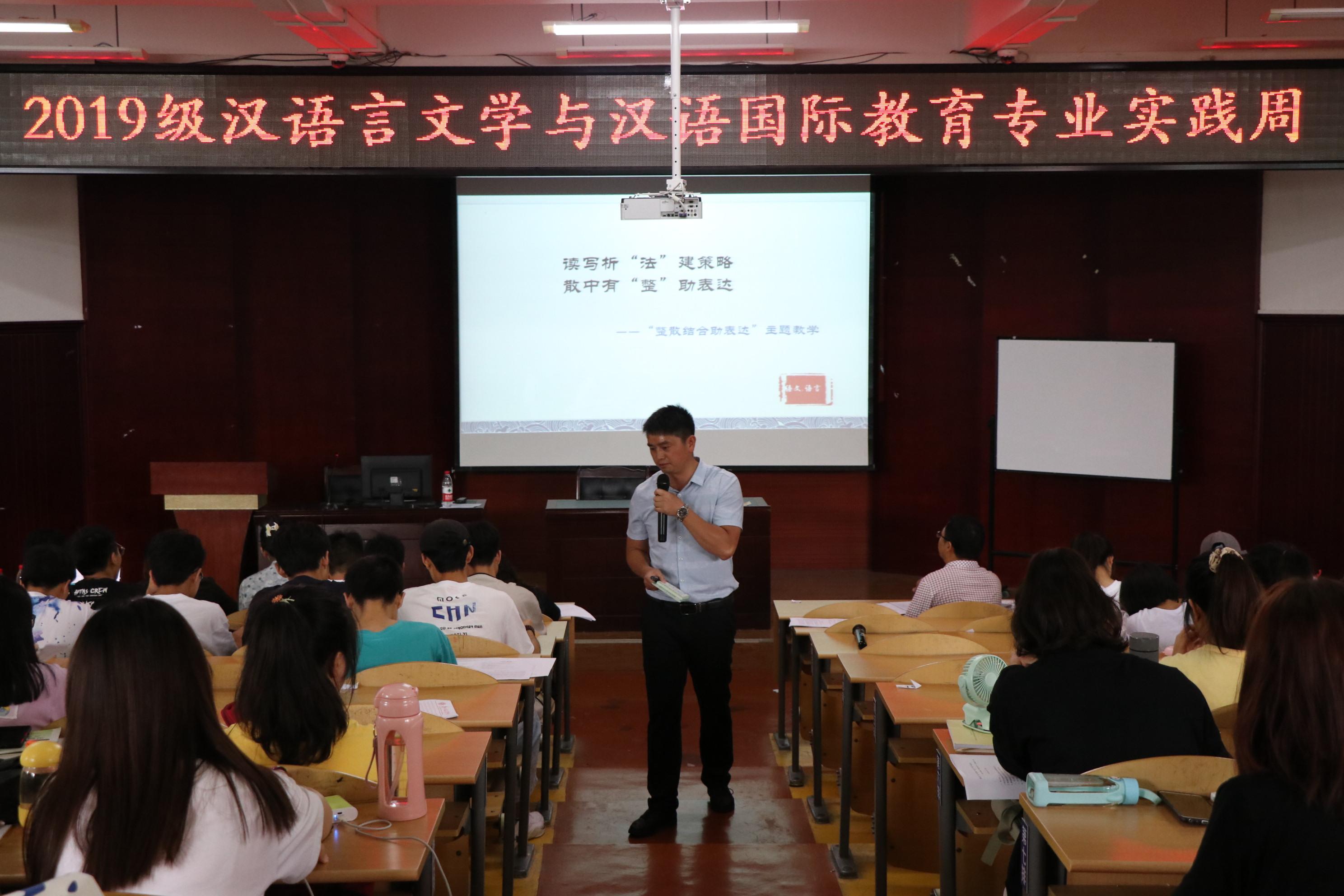 本次活动邀请到李文、胡娟、申璐、朱江培、姜了元等省级(市级)语文名师领衔的工作室,涵盖了小学、初中、高中三个学段,五家名师工作室共派出16名成员为云顶国际官网登录入口4008云顶网站的汉语言文学、汉语国际教育两个专业的2018级、2019级共计300多名学生开展示范课教学、评课议课、专题讲座等教学实践活动。