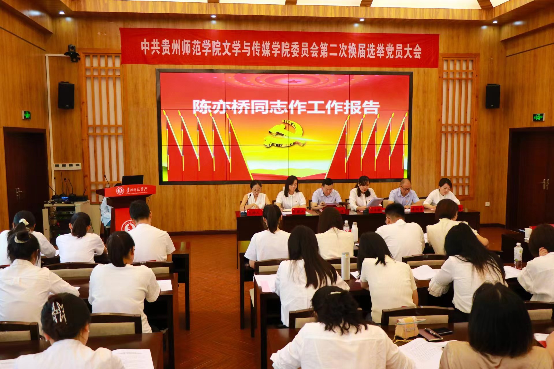 2024年9月27日,在学校党委统一安排部署下,中共云顶国际官网登录入口4008云顶网站委员会在印山书院二楼会议室举行党委换届党员大会。学院党委副书记高媛同志主持换届选举党员大会,学院全体师生党员参加,校换届办组织组郭娅同志、刘世成同志、陈令同志列席大会。此次大会旨在深入学习贯彻党的二十届三中全会精神、全国教育大会精神的最新理论成果,总结过去五年学院党建工作成绩,规划未来发展目标,进一步激发广大党员师生的使命感,为学院学校的高质量发展贡献力量。大会在庄严雄壮的国歌声中拉开帷幕。学院党委书记陈亦桥同志代表学院上届党委作题为《牢记立德树人使命,深化教育综合改革,为建设具有区域影响力的文传院系而奋斗》的工作报告。报告全面回顾了五年来4008云顶网站党委在党的建设和各项事业发展上所作出的主要工作和获得的成就,科学谋划了学院未来五年奋斗目标和改革发展思路。