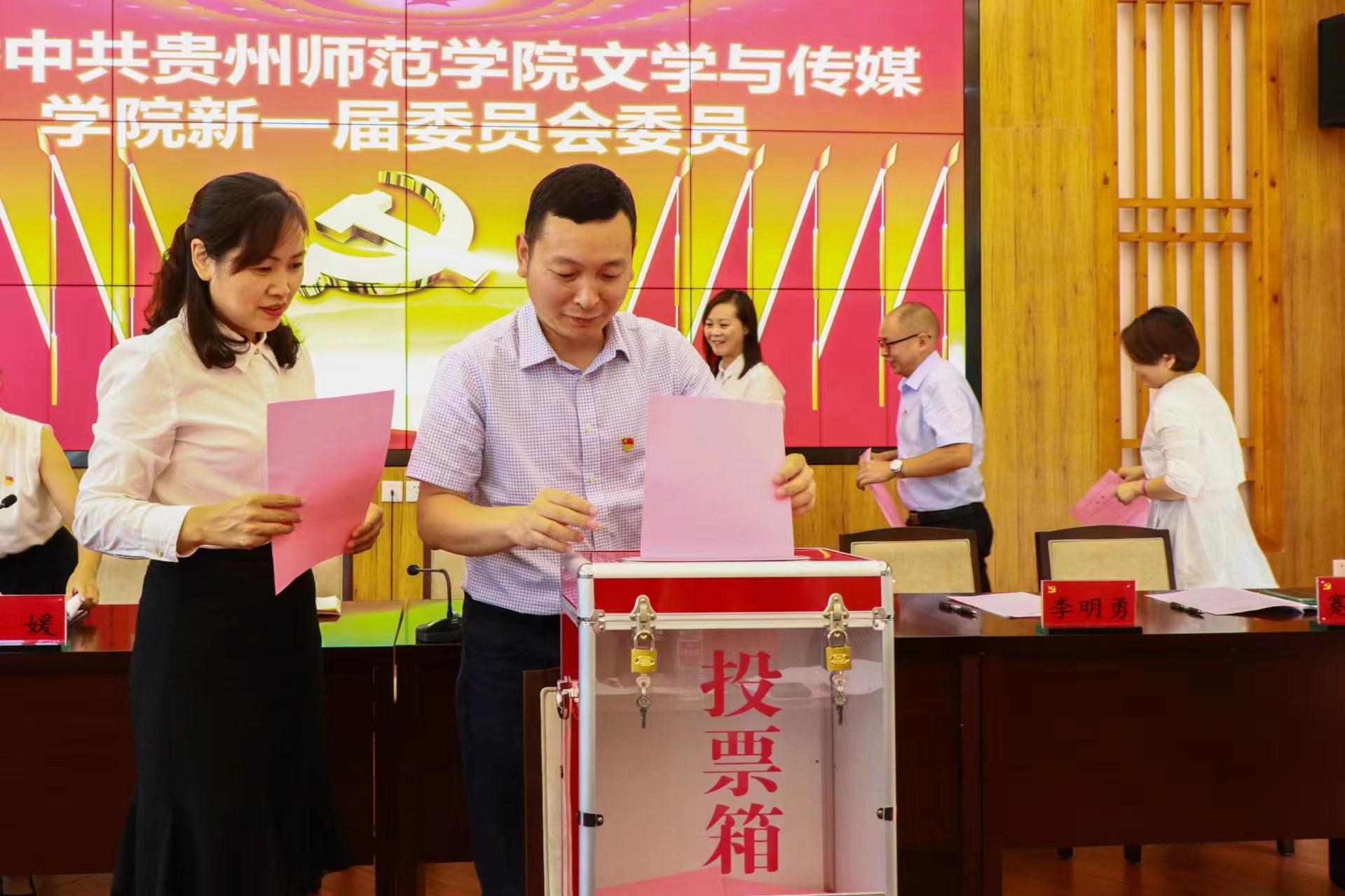 会议各项议程圆满完成后,在全员齐唱的《国际歌》中胜利闭幕。会后,新一届中共云顶国际官网登录入口4008云顶网站委员会举行第一次全体会议,选举产生了学院党委书记、副书记,并明确了党委委员具体分工。新一届学院党委表示,将继续坚持以习近平新时代中国特色社会主义思想为指导,团结带领全院教职工,落实以立德树根本任务,贯彻落实全国教育工作会议、全省高等教育高质量发展大会精神,在学校党委坚强领导下,踔厉奋发,笃行不怠,进一步解放思想,实事求是,开拓进取、扎实工作,为建设具有区域影响力的文传院系而奋斗!