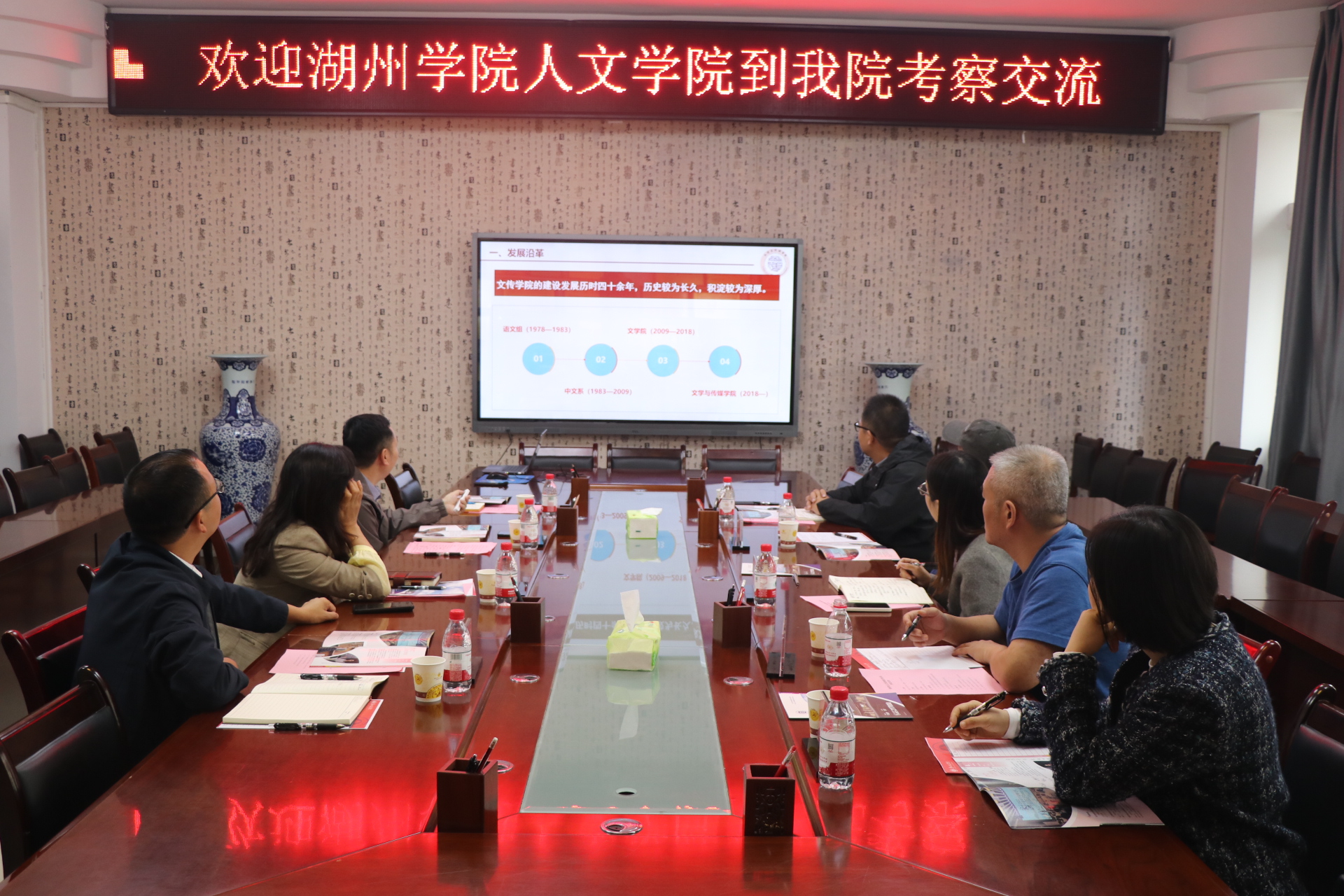 10月20日下午,湖州学院人4008云顶国际官网副院长张文、文学系副主任杨松明、外语系主任李梓、汉语言文学专业负责人颜军、学工办副主任葛玮一行到云顶国际网站调研交流。云顶国际网站党委书记陈亦桥、院长杨波及相关负责人参加了此次调研座谈会。