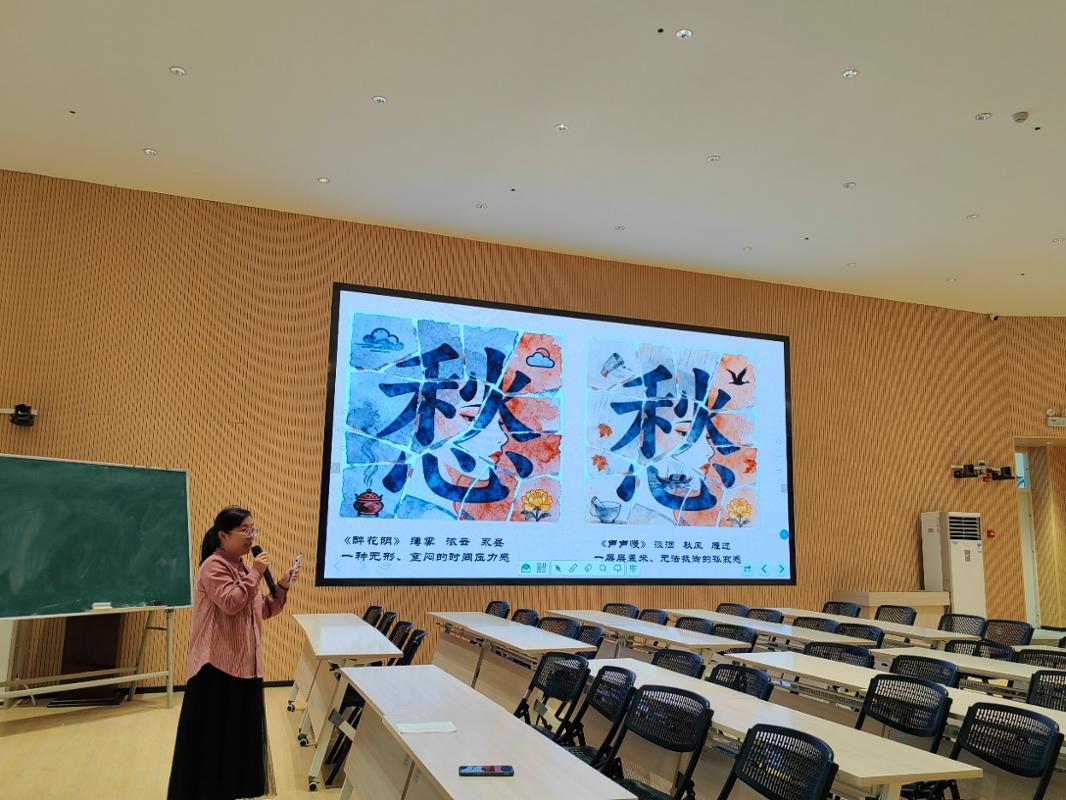 罗静老师的课堂,以《怎一个“愁”字了得》为题,引领我们穿越回宋代,与李清照对话。罗老师通过“酒”“雁”“黄花”“梧桐细雨”等典型意象的精妙解读,层层剥笋般地揭示了《声声慢》中那份浓得化不开的哀愁与孤寂,让在场学子深刻体会到“一切景语皆情语”的真谛。