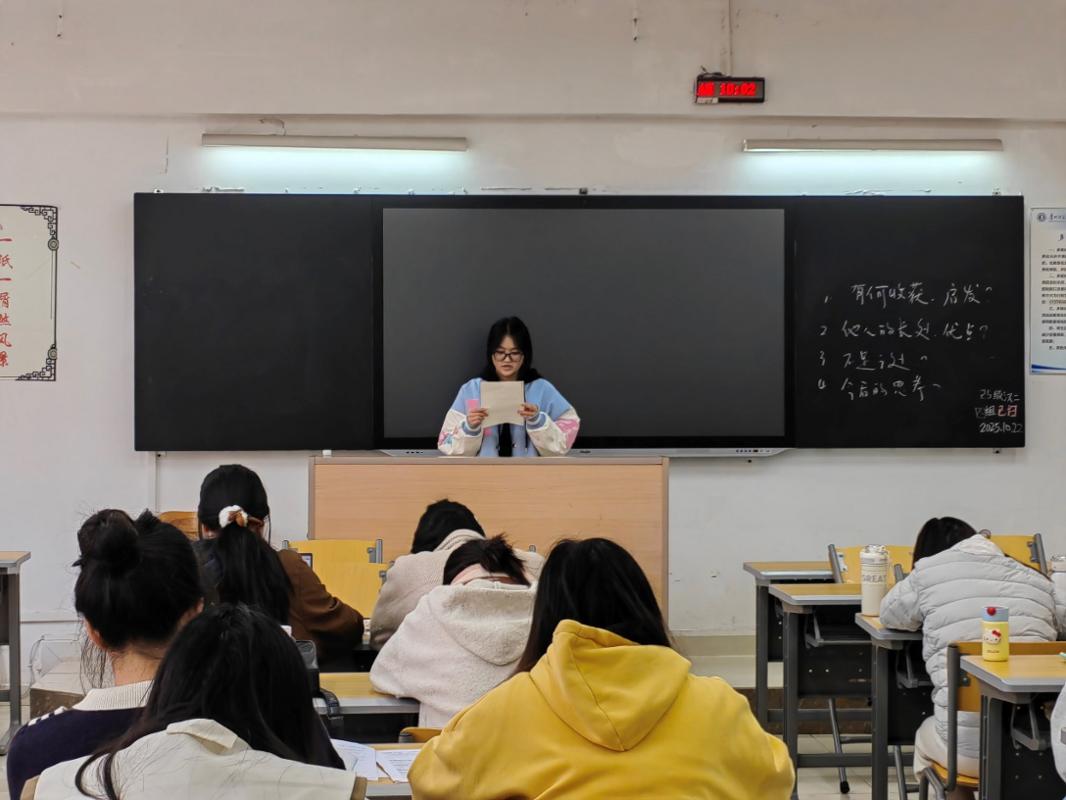 上午八点半,教室里气氛热烈。各班同学以小组为单位,围绕实践周前几日的所学、所感、所悟进行了深入的交流与探讨。大家各抒己见,思维的火花在不断碰撞中绽放。在随后的汇报环节中,各小组代表依次上台,条理清晰地阐述了本组的讨论成果与实践反思。这不仅是对前期学习的总结,更是一次宝贵的思维梳理与表达能力锻炼,充分展现了各班同学勤于思考、善于总结的青春风采。