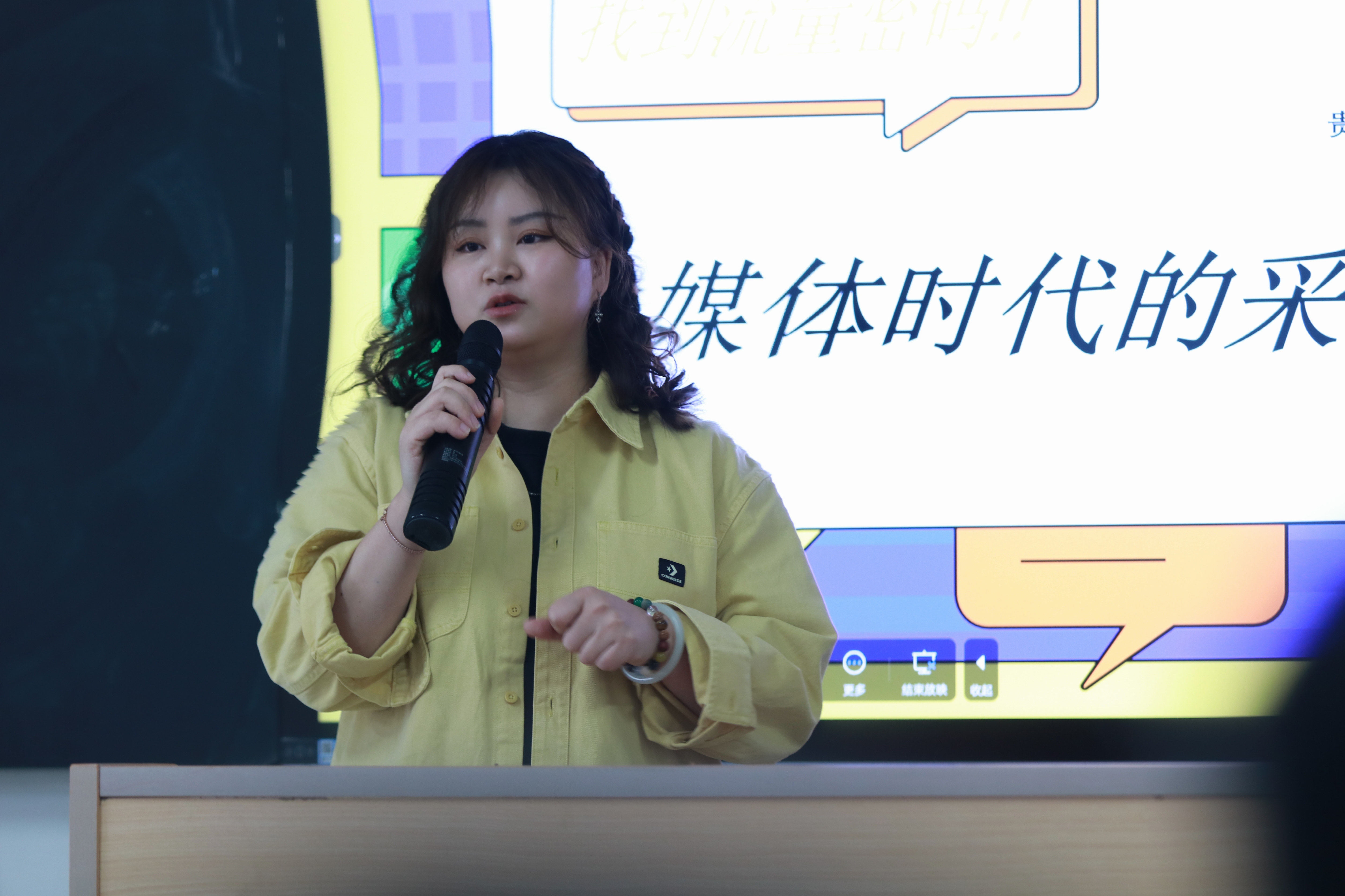 在分享会上,母艺芳以“融媒体时代的采访制作思路”为主题,从融媒体是什么为切入点,以“主题策划”“采访过程”“编辑制作”“数据复盘”四个方面与同学们展开交流,并用她创作的《飞向大山的蝴蝶妈妈》《我的国风动漫梦》两部作品为例,向同学们讲述了她的创作过程以及从中获得的经验。
