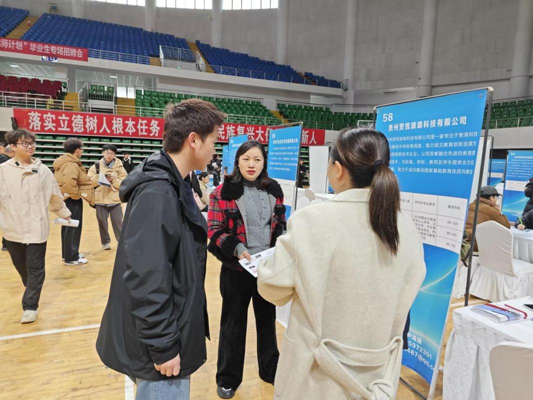 活动现场,陈亦桥先后与贵州贤悦琅琅科技有限公司、贵州永华技工学校、贵州华霖教育科技有限公司、贵州黔药集团遵北医药有限公司、贵州贝朵亚文化传播有限公司等多家教育、传媒类企业负责人深入交流。双方围绕学院专业人才培养模式与企业用人标准、岗位需求特点等内容,展开了深入讨论与交流。