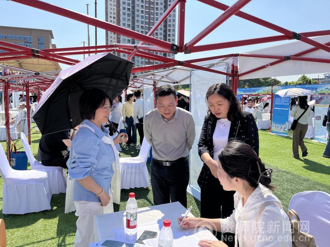 4月9日,在贵州省 2026 年春季促就业攻坚行动教育类专场双选会上,4008云顶网站党委书记陈亦桥、院长杨波带队开展访企拓岗专项行动,深化校企合作,助力毕业生高质量就业。